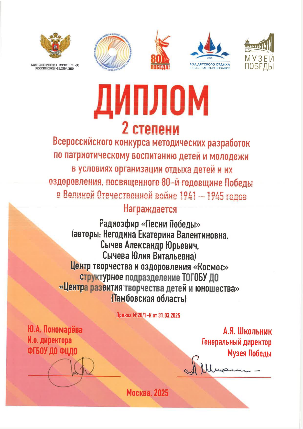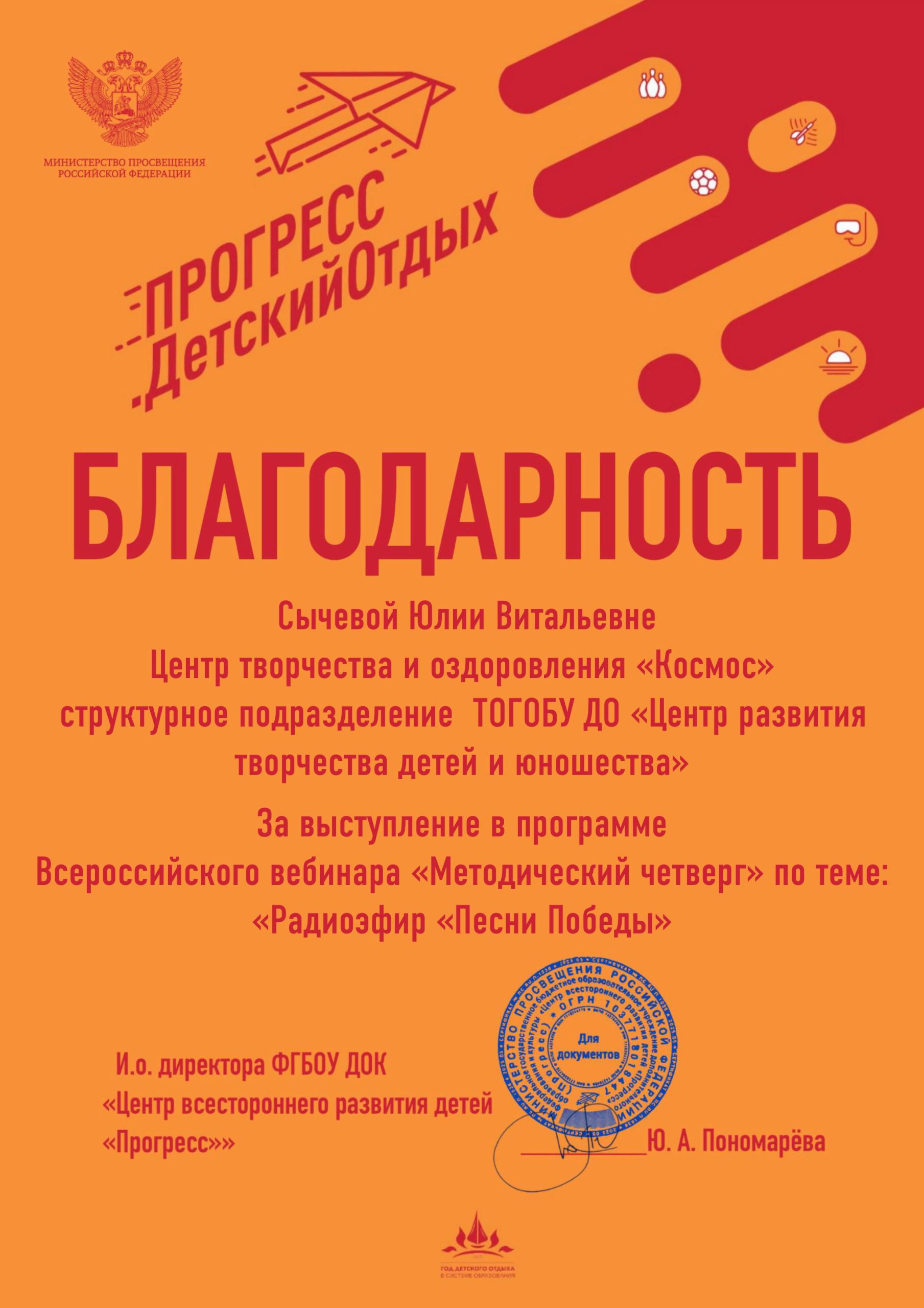 Благодарности за выступление по теме: "Радиоэфир "Песни Победы""