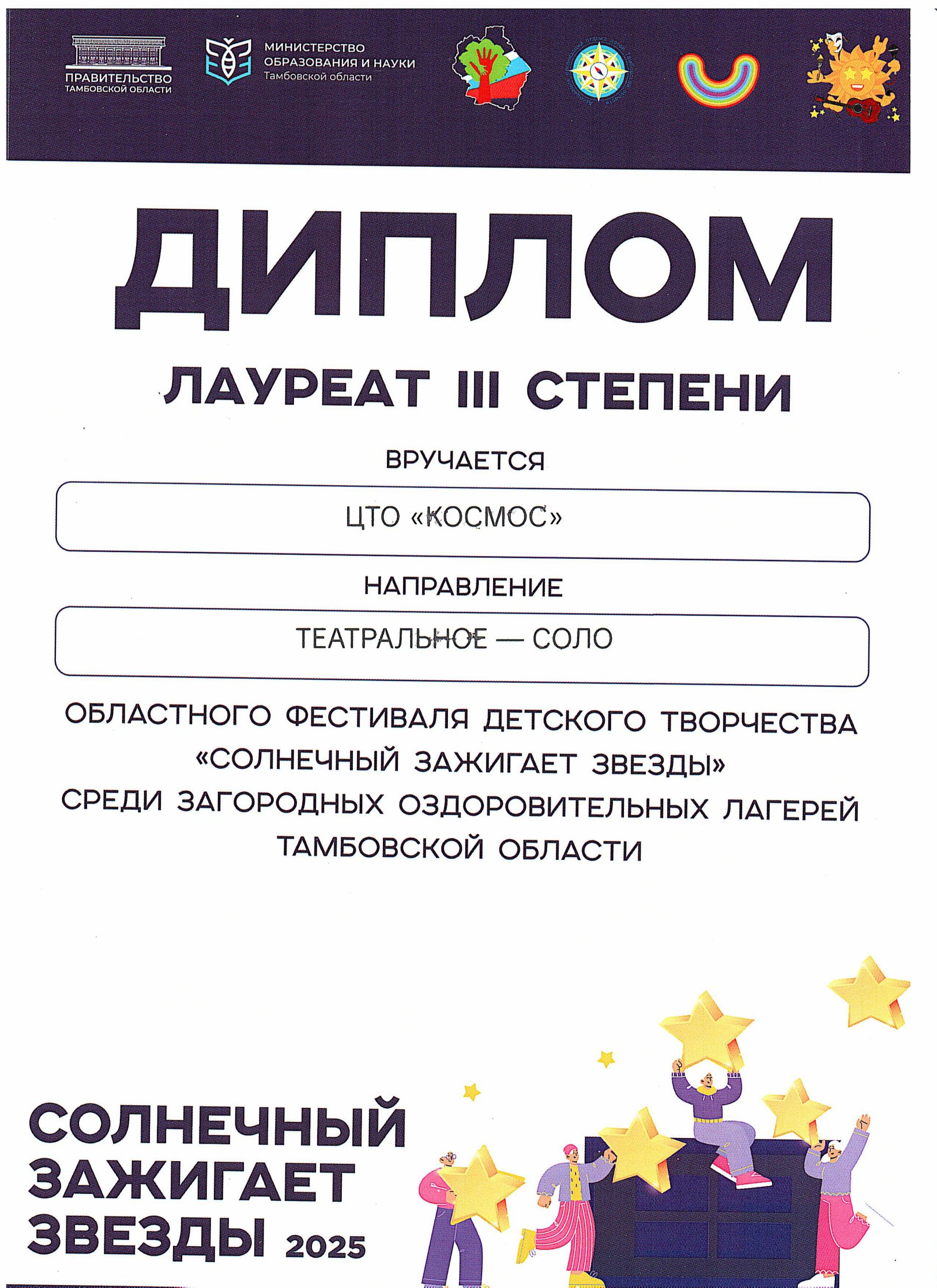 Награды областного фестиваля "Солнечный зажигает звезды"